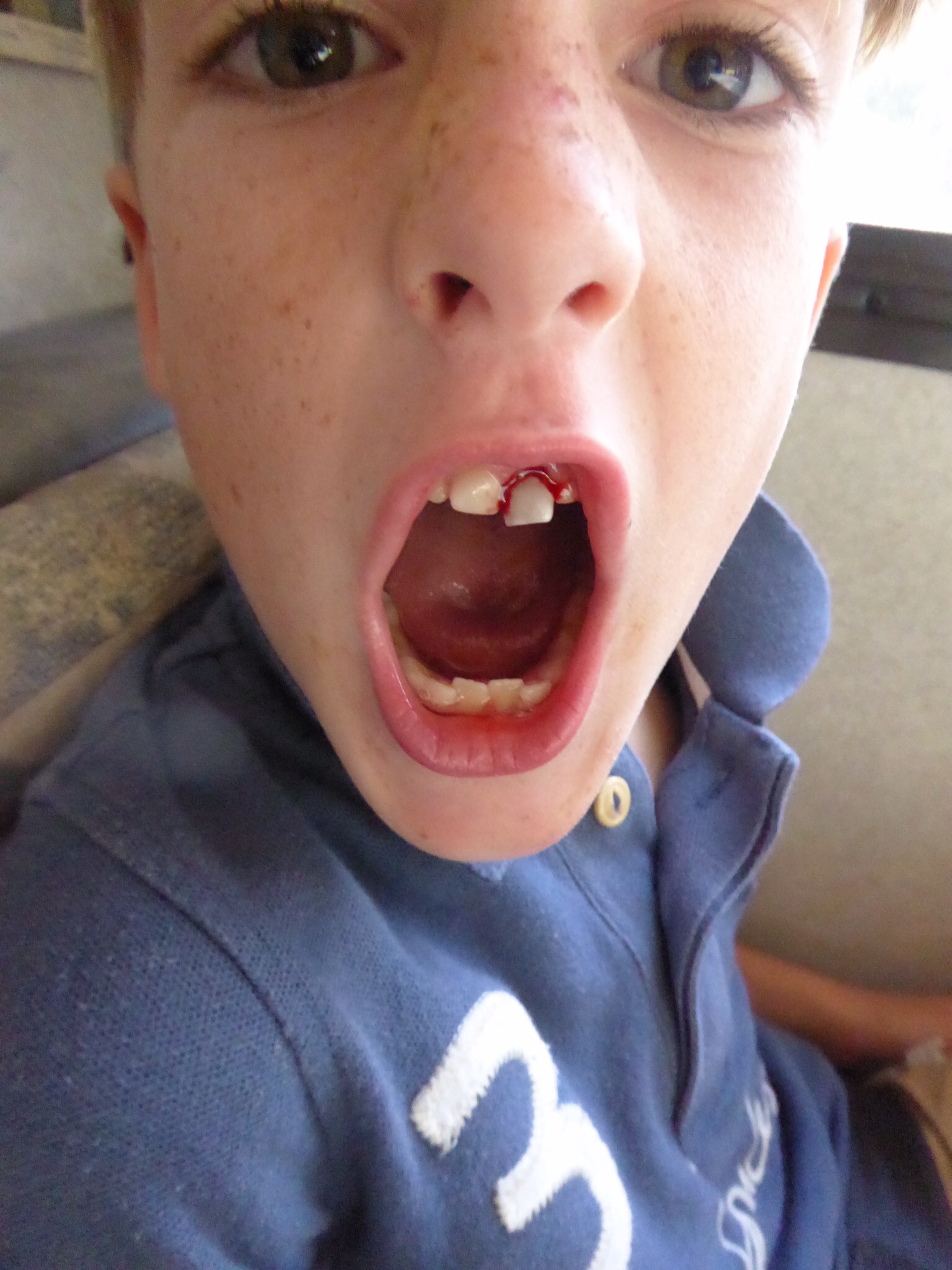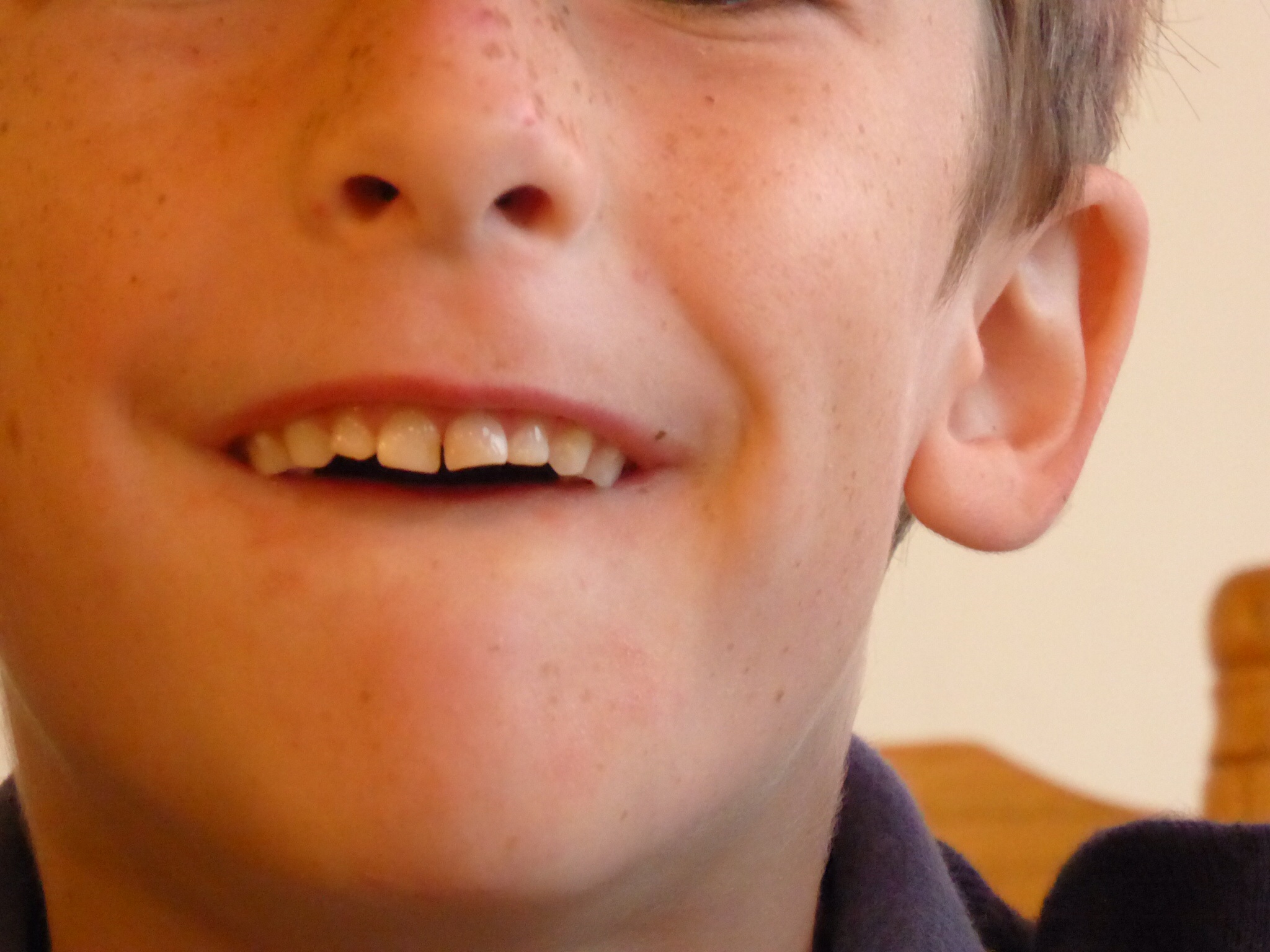 Quick update but Milo’s front tooth just fell out, after a protracted wobbly period, going from this…