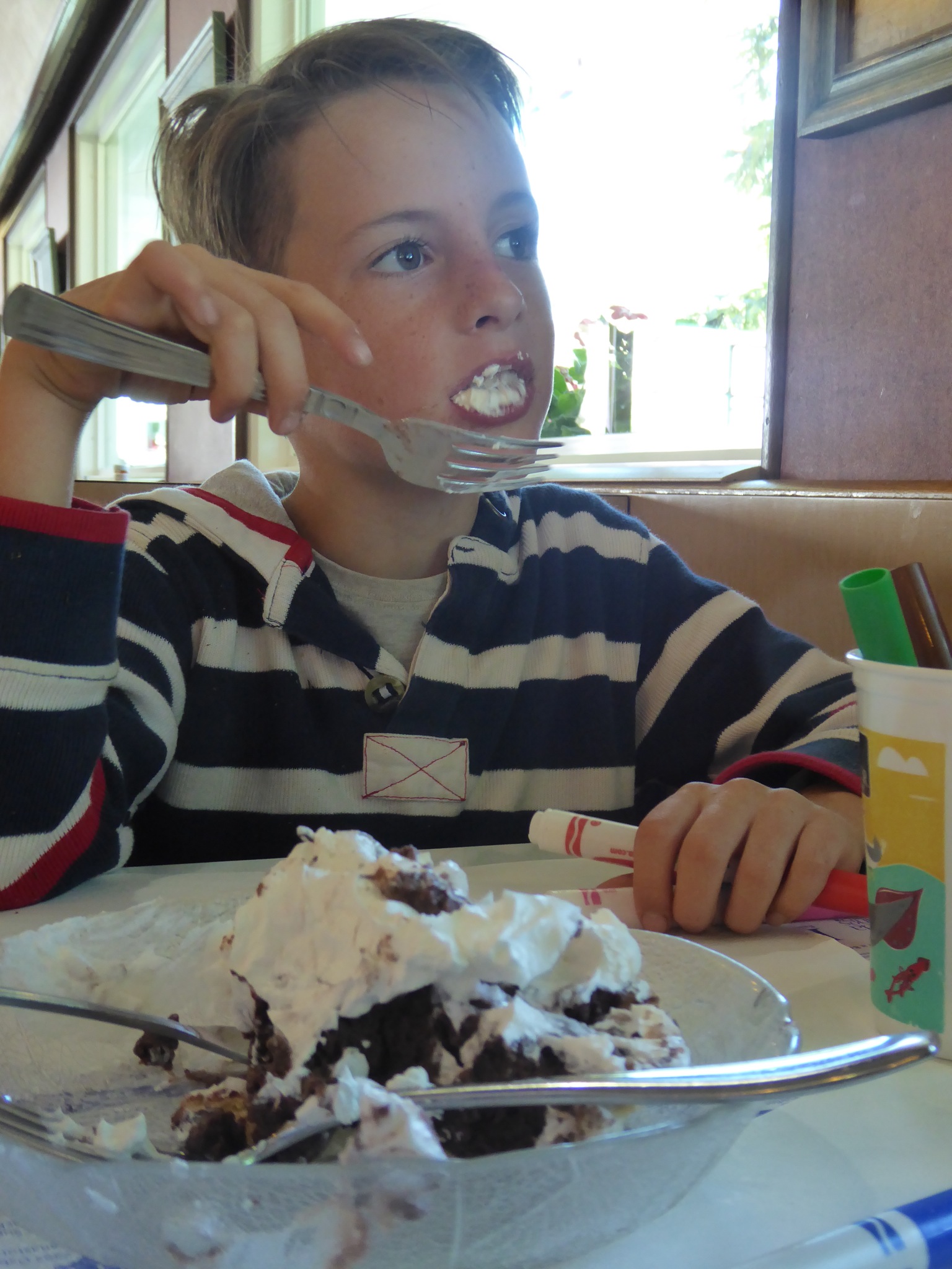 Maine caught 100 million lbs of lobster for the world last year and its Very cheap here. We bought 4 fresh out of the tank from the fisherman, and as the boys watched them boil in outdoor wooden vats, neither ate their lobster dinner and Milo is now vegetarian……