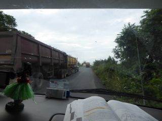 Being overtaken by double yes double articulated lorries …..who push in the minuscule space between us and the lorry directly in front and if you look v carefully there’s another one coming the other way….(photo not a fluke …IT WAS A REGULAR OCCURRENCE)
