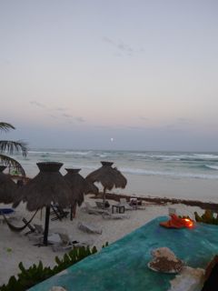 and just down the road is our favorite beach in the world…Tulum. Seen here from the balcony of a beach bar, on the biggest stretch of beautiful soft coral sand I’ve ever seen. terrible photo but google will reveal all, highly recommend a trip here.