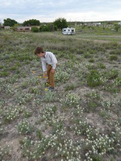 Our first parking spot in America contrasts sharply with our last overnight stop in Mexico. I hope Milo will forgive me the shot of him picking flowers, but for 50p per night you can stay here…